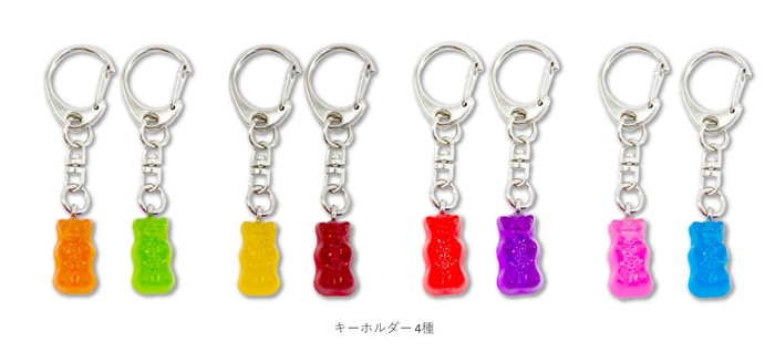 まるで本物のHARIBOグミみたいなキーホルダー、イヤリングや、エコバッグとしても便利なトートバッグ、お家で便利な掛け時計、バスタオル、ヘアブラシまで!