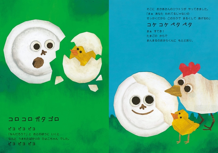 ねずみたちのチーズ、にわとりの卵の殻、パン屋さんのじまんのパンで、