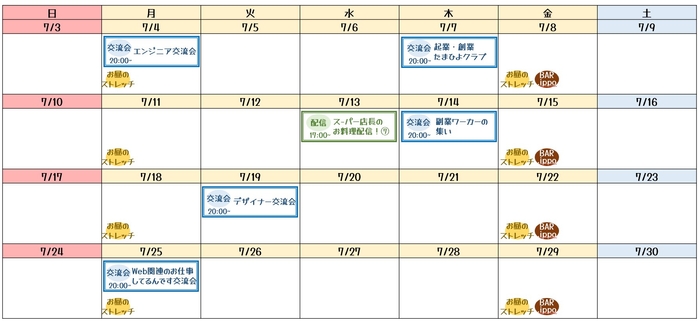 なお、7月の.ippoのイベント予定カレンダーはこちらとなります。今後もデザイナー交流会や、Web関連のお仕事をされている方向けの交流会を予定しています。