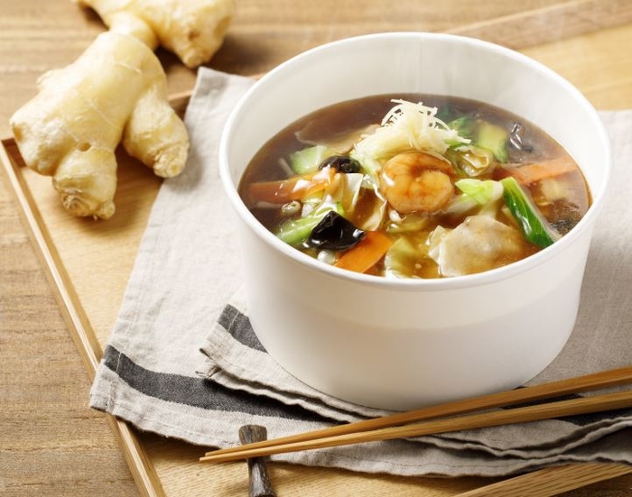 一つ目の五目は、国産生姜入りで体の芯から温まる具材たっぷり、とろみあんがおいしい「野菜五目らーめん」。太麺とたっぷり炒め野菜入りで食べ応えも抜群です!