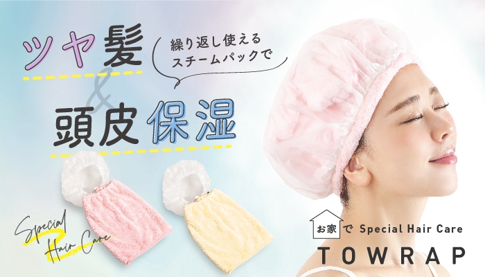 <新商品>繰り返し使えるスチームパックとラップ効果でツヤ髪&頭皮保湿「タオラップHair」