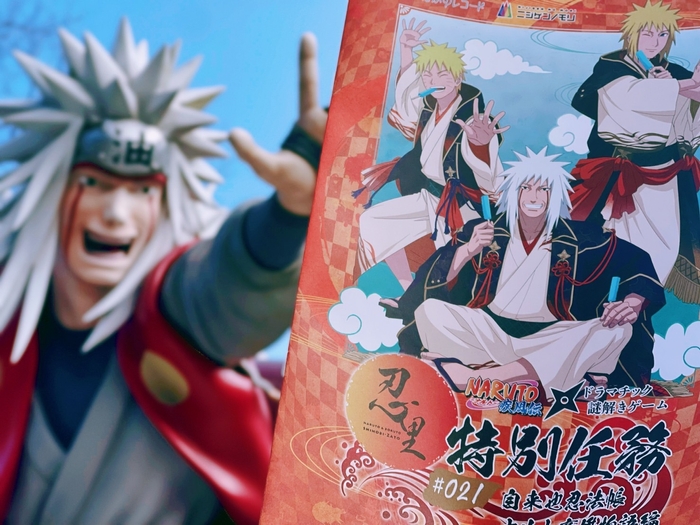「NARUTO-ナルト- 疾風伝」のキャラクターたちのオリジナルストーリーを体験しながら、謎解きゲームに挑戦する特別イベントの第21弾。3人の師弟愛を体験しながら、謎解きゲームを楽しむことができる。任務を達成された方には、オリジナルステッカーをプレゼント。