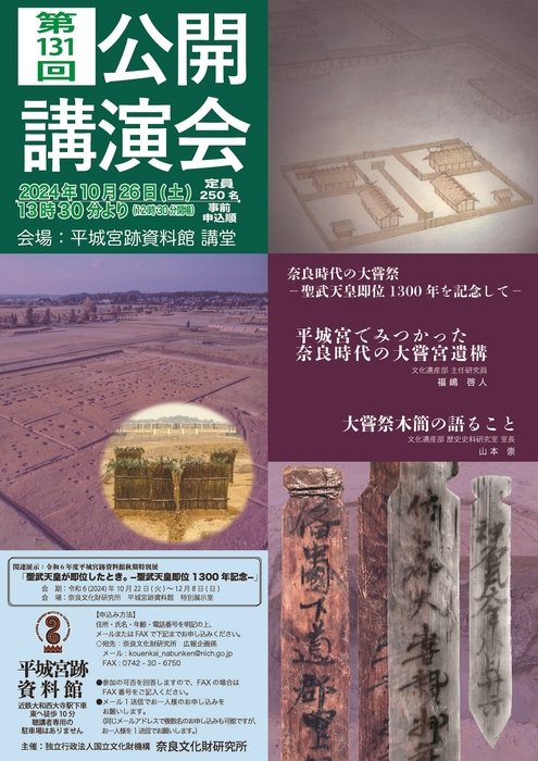 [奈文研イベント]奈良文化財研究所 第131回公開講演会「奈良時代の大嘗祭-聖武天皇即位1300年を記念して」(聴講無料)のご案内 | NEWSCAST