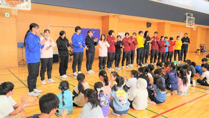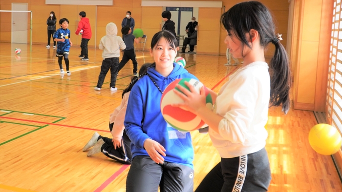 バレーボールに興味を持ってもらうことと、体を動かす楽しさを体験してもらうことを目的に企画しました。子どもたちの「出来た」という感情を大切にするため、子どもとの関わり方やゲーム内容にたくさんの工夫をしました。子どもたちをまとめることやそれぞれのレベルの差を上手く揃えるための工夫づくりなどの大変さを実感しましたが、小学校の先生方、大学の教職員の方々にご協力いただき、企画を創り上げる楽しさも学ぶことが出来ました。
