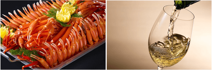 かに食べ放題にはキリっと冷えた白ワインを合わせてお楽しみください。
