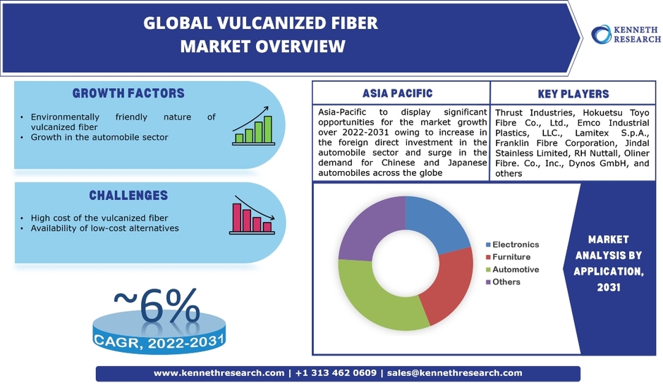 世界の加硫繊維市場の成長は、加硫繊維を電化製品に適用するための政府の支援によって推進される。市場は2022年から2031年の間に約6%のCAGRで成長する