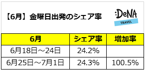 ~DeNAトラベルが金曜日に出発する旅行者数のシェア率を調査~