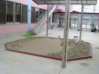 【納入事例レポート】あ、ここにも杉田エース!Vol.107香川県高松市の幼稚園増築工事。砂場の見切り材として「エースエコブロックガード」を納入!