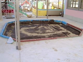 高松市内の金物店様から幼稚園の増築工事に関する相談がありました。各教室のサインや傘置の金物などさまざまな商品を納入することになったのですが、その中の一つに今回ご紹介させていただく砂場の縁に使う「エースエコブロックガード」がありました。お客様である金物店が工務店から、柔らかいものはないか?と相談を受けたのです。一昔前の砂場では、コンクリート製の縁がほとんどでしたが、最近は安全性を求めている幼稚園が多いのでゴム製の縁を提案させていただいたのです。カタログでご説明をした後、サンプルをお届けしたり、施工方法に関する詳細な打ち合わせも数多くさせていただきました。
