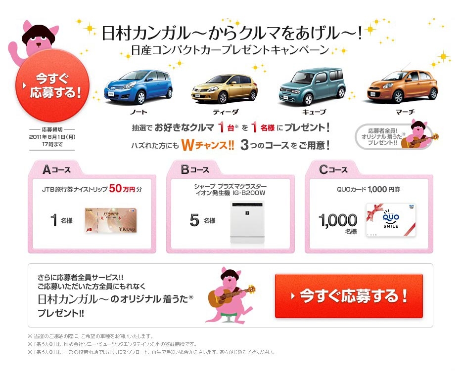 日村カンガル~からクルマをあげる~! 日産コンパクトカープレゼントキャンペーン