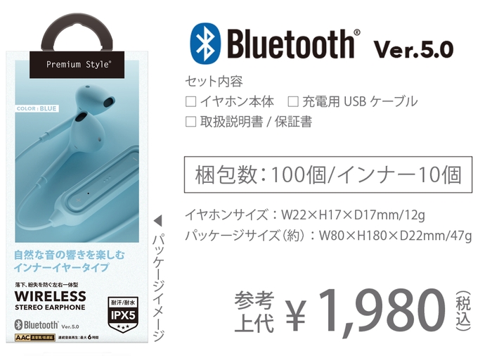 [Premium Style] Bluetooth® 5.0搭載 ワイヤレスステレオイヤホン インナーイヤータイプを新発売