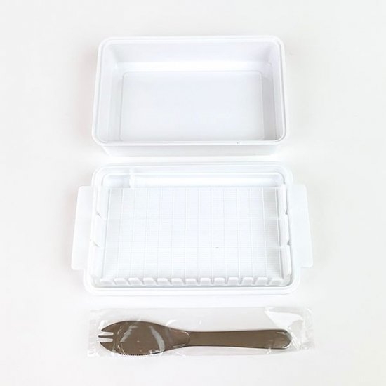 カッティングガイドのほかに、先割れスプーンも付属。バターを取り出す際に便利ですね。
