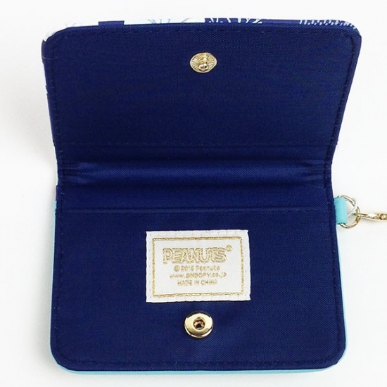 二つ折りの中を開くと、両側にポケットがついています。PEANUTSのロゴタグもオシャレですね。