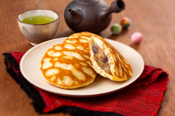 こだわりの虎模様で焼き上げた生地は、はちみつの甘い香りがほのかに香るしっとりと食感で、5種類の豆をふんだんに使用した味わい深い“まめ餡”と相性抜群。この時期にしか味わえない季節限定のどら焼です。