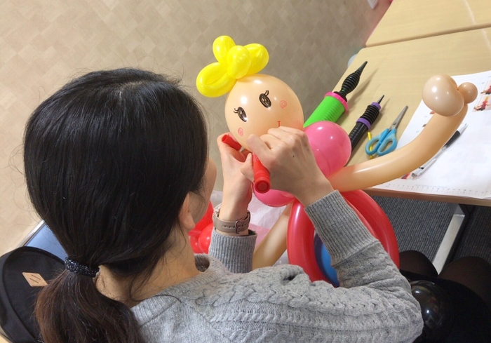 細長い風船などを使って膨らまし方などの基礎から行い、簡単な動物や帽子、お部屋をにぎやかにできるバルーンデコレーション作成まで幅広く学べるためバルーンを趣味にされたい方におすすめです。ご家庭、幼稚園や学校、ご友人達とのパーティや催し物の時に使えるバルーンのデコレーション方法を学ぶことも可能です。