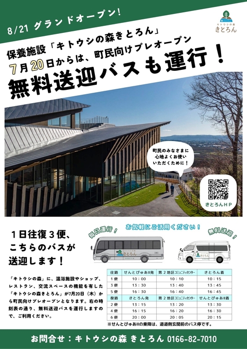無料送迎バスも1日3便送迎。8月21日には一般向けグランドオープン