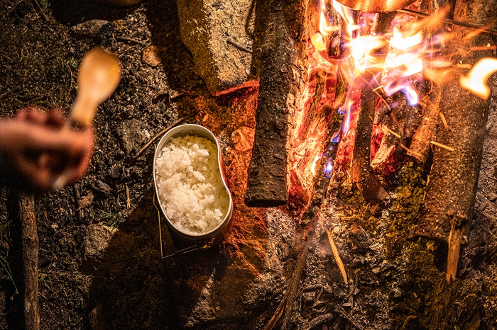 2合炊きの小さめの飯盒はソロに丁度良いサイズ感です。ハンドルの長さはパッキングしやすいように考えられた長さに設定。飯盒の独特な形状はバックパックへの収まりが良いので、山行用のクッカーとしてもおススメな飯盒です。