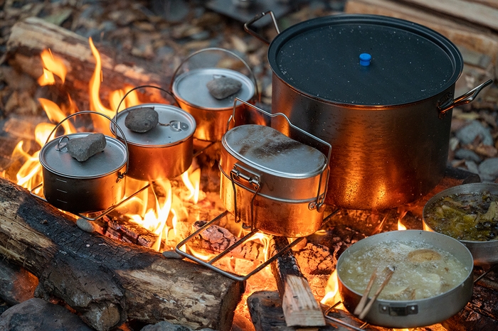 飯盒の野外調理器具としての機能性は誰もが知るところですが、自衛隊官給品の戦闘飯盒2型をベースにハンドルの長さと本体塗装を変更。汎用性、機動性、そして道具としての美しさが格段にアップしました。