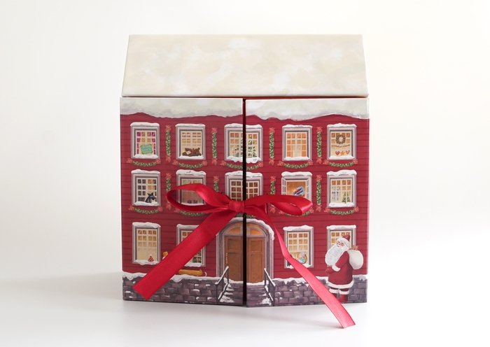 内容:雪の積もった可愛いアパートメント型のアドベントカレンダーの引き出し全てに、可愛らしい30g蜂蜜を詰めました。クリスマスまでの1週間毎日引き出しをあけて、何がでてくるかワクワク。美味しく楽しくカウントダウンしましょう!