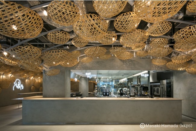 店内は京都嵐山の「竹」を用い、伝統的な六ツ目編みの竹かご572個で覆われたドーム状の暖かな空間となっております。店であると同時にドーナツの厨房でもあるこの場所を、竹かごを通じて、京都の繊細でたくましい台所文化がよみがえる。