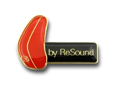 当社に託されたオーダーメイドアイテムは、記念品とスタッフの営業ツールを兼ねた「リサウンド・ドットピンズ」。鮮やかな赤と黒をソフトエナメルで艶やかに仕上げた完成品の名称は、もちろん大きな期待がかかる新製品からネーミングされたもの。金の社名が光るピンズは「リサウンド・ドット」をシッカリとPRしています。