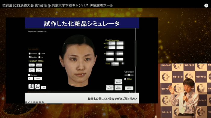 昨年行われた技育展2023では、長野大学の3年生(現在4年生)がエントリーした作品「The SHITSUKAN(ザ・シツカン)」が映えある優勝に輝きました。大学の研究室ではCGと色彩工学をかけあわせた技術を研究。所属している研究室と化粧品メーカーが共同開発を行っている「メイクシミュレーター」のプロジェクトに大学2年生の頃から携わっていた経験を活かし、優勝作品の開発を行ったとのことです。