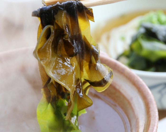収穫&塩蔵体験をSNSアップであったか「わかめうどん」