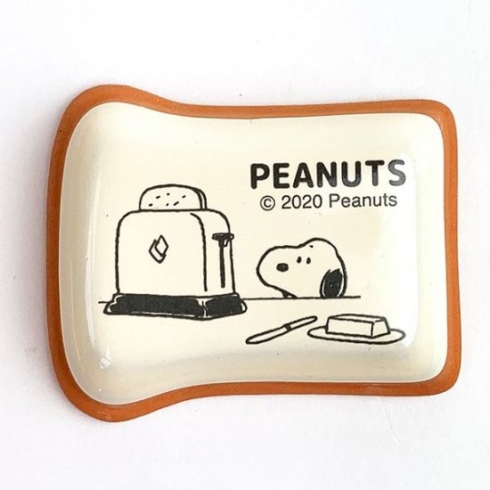 食パンの形をしたプレートで、内側にはスヌーピーの足跡がデザインされています。