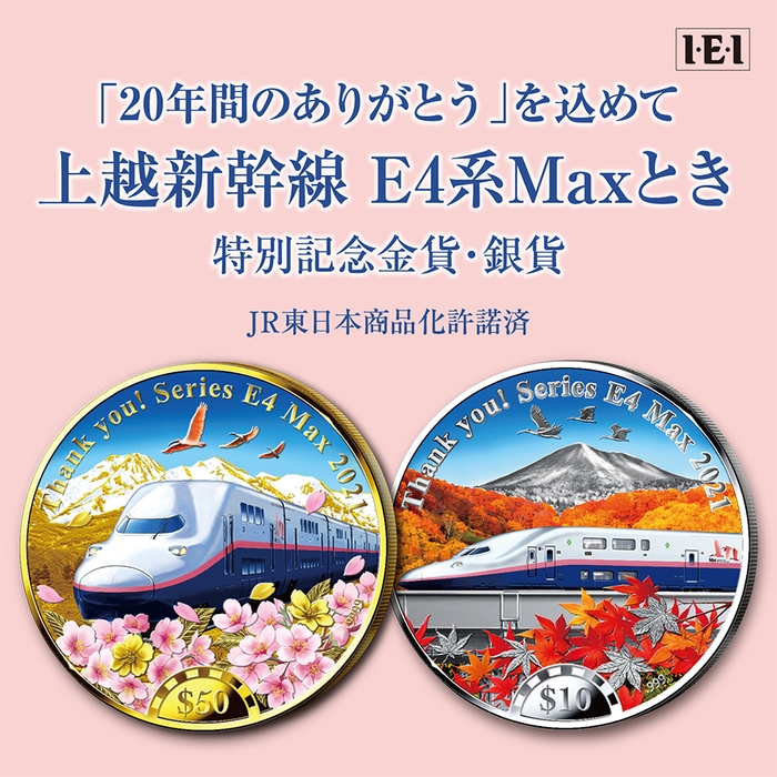 インペリアル・エンタープライズ株式会社(所在地:東京都荒川区、代表取締役社長:原 良郎)は、「20年間のありがとう」を込めた<上越新幹線 E4系Maxとき特別記念金貨・銀貨>を、2021年10月15日(金)より、I・E・I オリジナルショップで発売開始いたします。