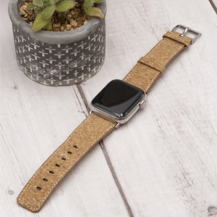 Apple Watch専用のコルクバンドです。柔らかく肌に馴染む質感と風合いで、カジュアルにもビジネスシーンでも使えるシンプルなデザインです。
