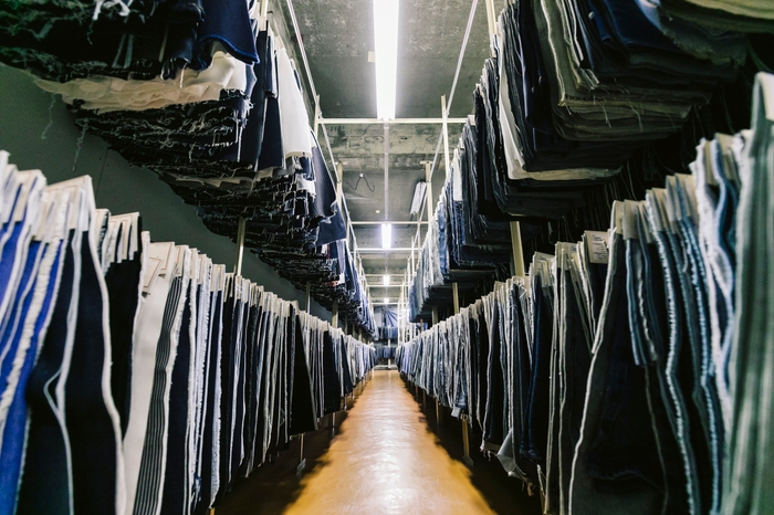 カイハラ(株)の一貫生産体制は、厳格な品質基準を設け、紡績から整理加工まで、デニム作りのすべての工程を社内で完結させ高品質のデニム生地を絶えず生産することができています。