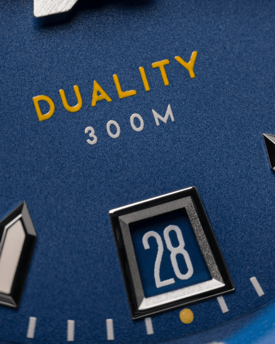 70年前に誕生したデュアルクラウン・ダイバーズウォッチを現代的に再構築した「Duality II Drift Blue」。深いブルーにわずかなヴィンテージフェードを施したダイヤルは、クラシックなコンプレッサー・ダイバーへのオマージュ。光の角度で豊かに表情を変え、海の深みと経年の美しさを同時に感じさせます。厚さわずか11.5mmのスリムケースに300m防水を備え、2時位置のスクリューダウン式クラウンで操作する内部回転ベゼルや、ハイポリッシュのファセット付きインデックスなど、伝統と革新を融合。ベゼルタイプは12時間/60分表記の2種類がラインナップ。