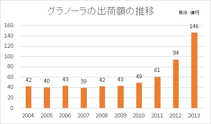 グラノーラの市場は、年々拡大しています。特にフルーツやナッツの入ったタイプのグラノーラのヒットを背景に近年の伸びは著しく、出荷額は2010年の49億円から2013年には146億円と、3年間で約3倍に増えています。当社でも本年4月に、中部・近畿・中国地区限定で「グラノーラロール」を発売し、多くのお客さまにご支持をいただいています。