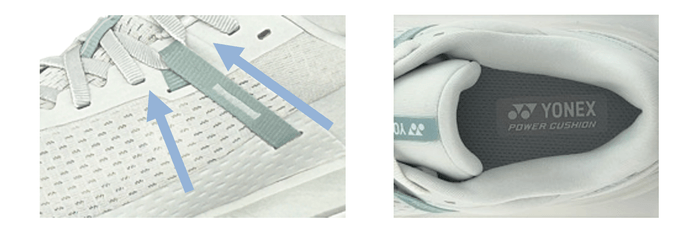 シューズの内部から足を包み込むように配置した柔らかなテキスタイルのベルトが、さらに中足部のフィット性を高めます。また、履き口のスポンジを増量し、やさしく足首を包み込むようにホールドし快適な履き心地を実現します。