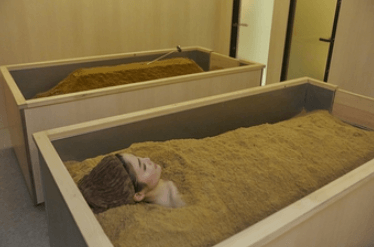 天然ヒノキ発酵パウダーに全身を包み込み芯まで温めることで、冷えや不眠、便秘などさまざまな不調を解消してくれます。