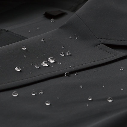 このスーツは、水着などのスポーツウェアにも使用される機能性ファブリックを採用しています。生地は旭化成株式会社のストレッチ繊維「ROICA®(ロイカ)」を使用したニット生地で、縦・横の両方向への高い伸縮性が特徴。一般的なスーツと比べて縦・横ともに6倍(当社比)のストレッチ性を誇るなど、抜群の動作性を体感できます。また、着用時の圧迫感(着圧)が極めて少ない他、裏地・芯地・肩パッドなどの付属を可能な限り省くことで、これまでにない“解放的”な着用感を実現しています。このようなストレスフリーな着心地に加えて、生地は伸縮後の回復性に優れており、シワになりにくいのも特徴です。また、撥水性があり雨や汚れに強く、自宅の洗濯機で丸洗いも可能でいつでも清潔に着用できます。