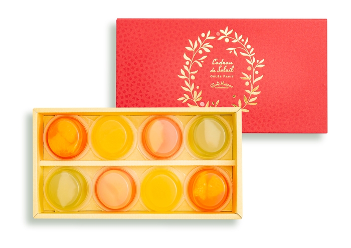 国産フルーツを2種類使用した、みずみずしくとろけるフルーツジュレ。宮崎のマンゴーや山形の佐藤錦など、4種類のジュレが入った夏限定ギフトです。