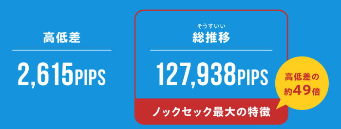 「総推移」とは、期間中に、「トータルの値動き」がどれくらいあったのかを示すデータです。一定期間の日脚の高低差(高値ー安値)の合計で算出しますが、その「総推移」が多いということはリピートしやすい、すなわちトラリピ向きの通貨であるということになります。