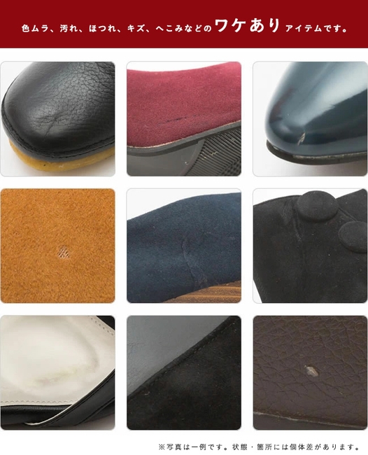 ※展示やモデル撮影として使用したものもあるため、靴底に多少のキズ、汚れ等がある場合がございます。