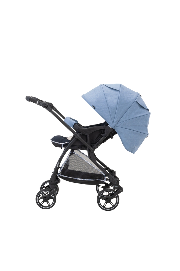 アカチャンホンポ限定モデル「Runfee Lino’n RA8L(ランフィ リノン RA8L)」は、大径18.0cmのシングルタイヤを対面走行時の前輪に採用することで、対面時の走行性をさらに進化させたベビーカーです。また、オリジナル機能として、赤ちゃんを乗せるシート表面のメッシュ部分には、吸水速乾性が優れた素材「クールマックス®オールシーズンファブリック」を採用。ハンドルには、押す人の身長に合わせて角度を調整できる機能を搭載し、収納時もコンパクトに折りたたむことができます。