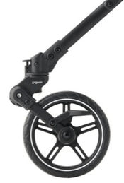 18.0cmの大径タイヤを対面走行時の前輪に採用することで、歩道などの段差をよりスムーズに乗り越えることができます。赤ちゃんが大きくなって背面で使用する際には、後ろにかかる重心をしっかり支えます。