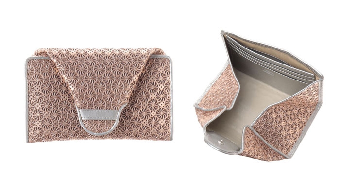 ブランドの顔とも言える人気の高いレザーシリーズ「GIRASOLE(ジラソーレ)」は「革に見えない革」をコンセプトに牛革に型押しと型抜きを同時に施したもの。一見金属のようにも見える艶やかで贅沢な光沢感は、使う仕草も美しく見せてくれます。