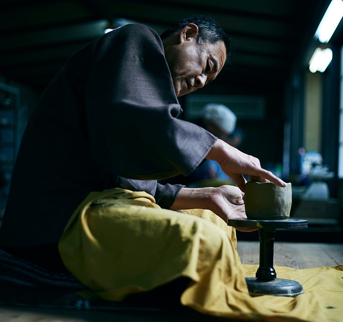 全国でも数少ない千利休の時代につくられた楽茶碗の技術を受け継ぐ窯元。1964年・京都・亀岡生