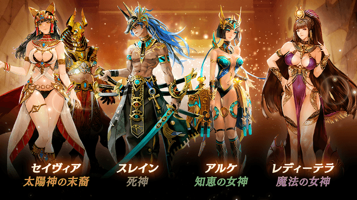 セイヴィア「太陽神の末裔」、スレイン「死神」、アルケ「知識の女神」、レディーテラ「魔法の女神」が登場。