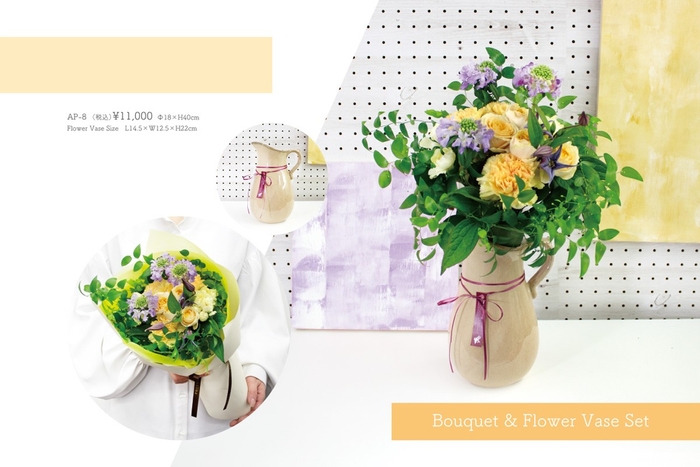癒しをテーマにしたイエローとラベンダーカラーのフラワーギフト。