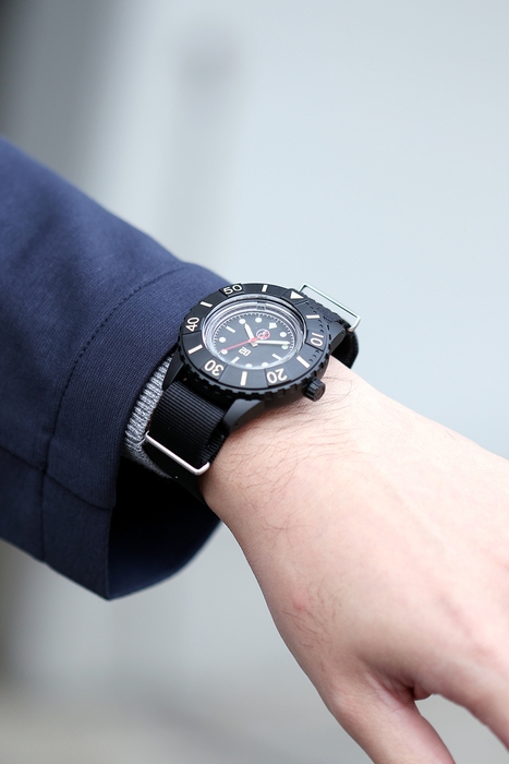 「Q&Q Smile(スマイル)Solar(ソーラー)」シリーズは、マリンスポーツにも装着できる20気圧※1というタフな防水性でありながら、軽量な仕様が人気の高機能なソーラー時計です。今回の初コラボでは、ビジネススタイルのカジュアル化に合わせ、ザ・スーツカンパニーのメイン客層である20代~30代のビジネスパーソンに向けて、ビジカジにもコーディネートできるデザインに仕上がっています。ビンテージ時計をモチーフとした文字盤デザインには、針や目盛(インデックス)に経年変化での色あせを表現したオフベージュに加えて、マットブラックを基調とした極太ベゼル※2とNATO(ナトー)タイプベルト※3を採用しています。ミリタリーテイストながら落ち着きのあるデザイン性と、アウトドアにも取り入れていただける高機能性により、ビジネスからアウトドアまで着用いただけます。