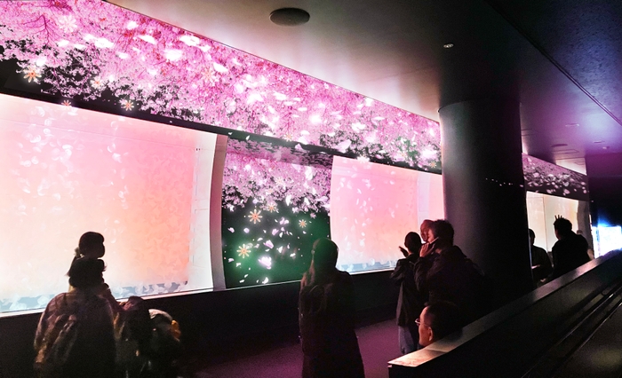 春は『桜』、夏は『新緑』、秋は『紅葉』、冬は『雪』をテーマに制作されたグラフィック映像の中に各成長段階のミズクラゲが登場し、その成長の過程を幻想的なBGMとともに辿っていくことができます。