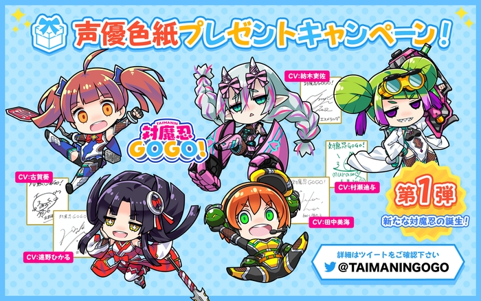 株式会社Gremory(本社:大阪市中央区、取締役社長:武山英治)より、本日2022年10月3日(月)、「対魔忍GOGO!」声優色紙プレゼントキャンペーン第一弾の開催をお知らせいたします。本キャンペーンは公式Twitterアカウント「@TAIMANINGOGO」にて開催されるキャンペーンとなっております。この機会に奮ってご参加お願いいたします。