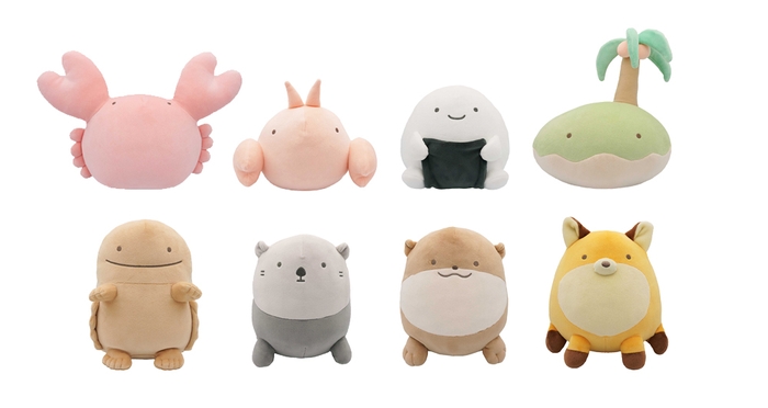 ぬいぐるみ M 8種(カニ・エビ・のりおにぎり・なかじま・大さんせいうお・ラッコ・カワウソ・だめぎつね) 各3,300円(税込)