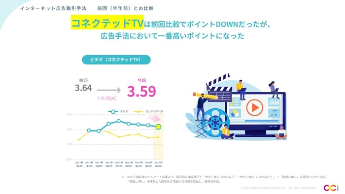 株式会社CARTA HOLDINGSのグループ会社である株式会社CARTA COMMUNICATIONS(東京都港区、代表取締役社長:目黒 拓、以下「CCI」)は、2024年12月、国内のデジタルマーケティング業界の関係者を対象に調査を実施し、2024年下期インターネット広告市場動向および、これからのインターネット広告における課題・中長期的施策・トレンドについてまとめたレポートを発表しました。